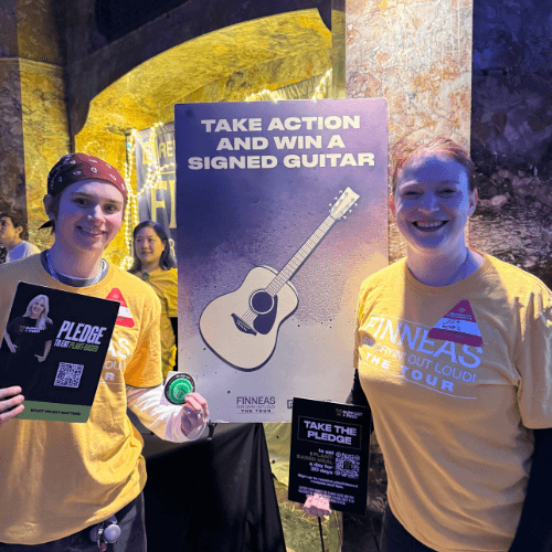 The team loved the crowd’s energy—many fans came back after the show just to say thanks or learn more. “All of the fans were so kind and curious,” one volunteer shared. “You could tell they really cared about what FINNEAS and REVERB are doing.”