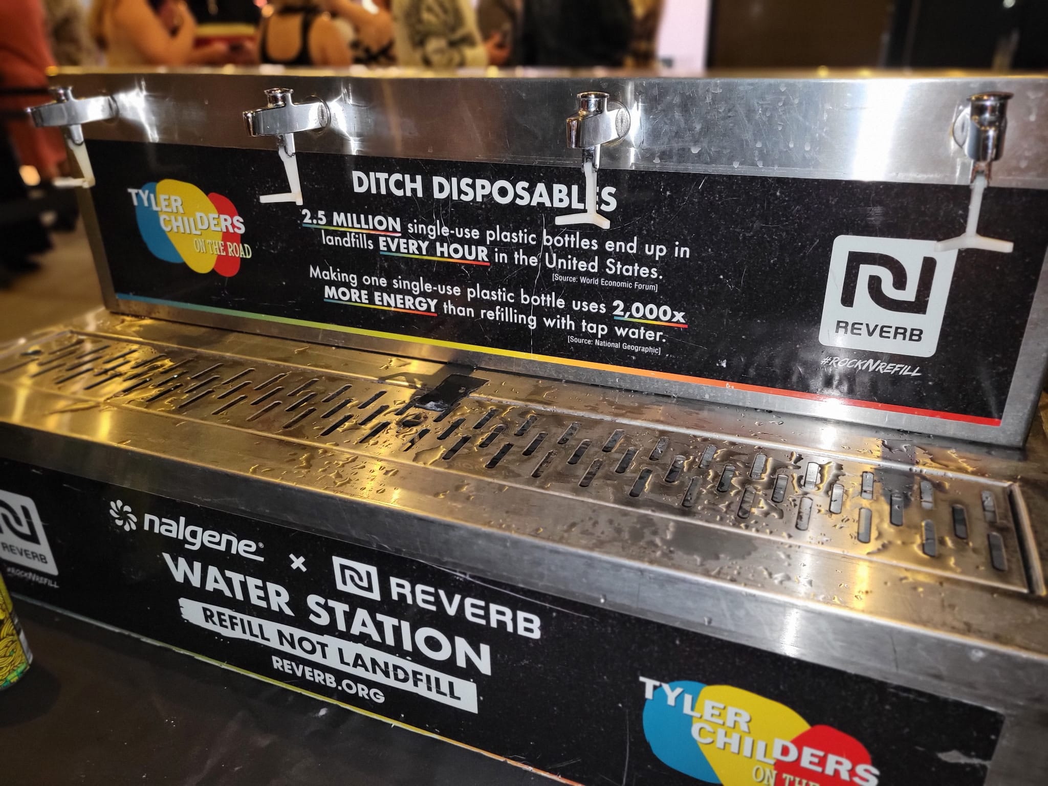 - 10,240 Single-Use Bottles Eliminated Back of House: REVERB supplied refillable bottles and installed water refill stations backstage, replacing disposable plastics.