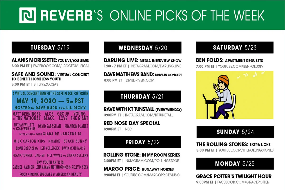 It can be hard to stay on top of all the amazing online events happening these days, so here’s a guide of REVERB events/friends-of-REVERB-events to help you decide what to tune into this week!