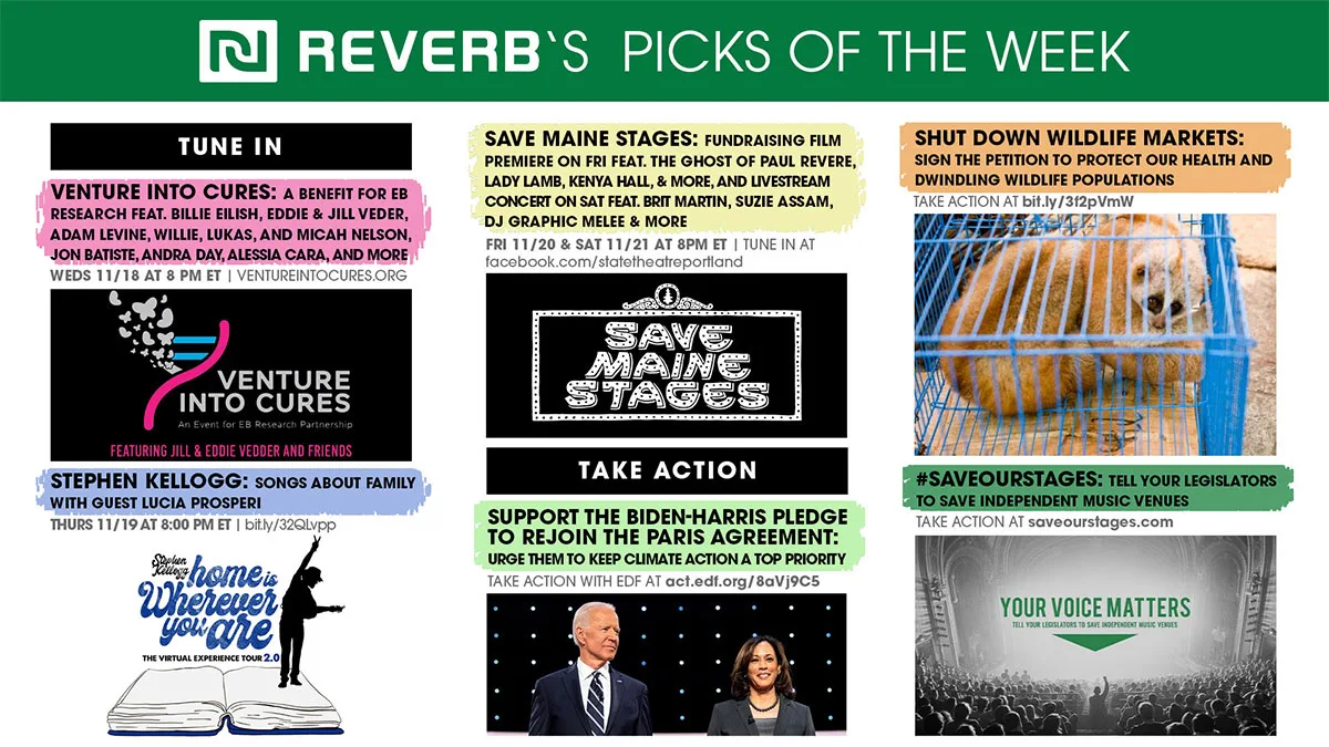 Each week the REVERB team pulls together a list of our favorite livestream events and actions you can take to help people and the planet. Be sure to follow us on Instagram, Twitter, and Facebook to see our top picks every week!