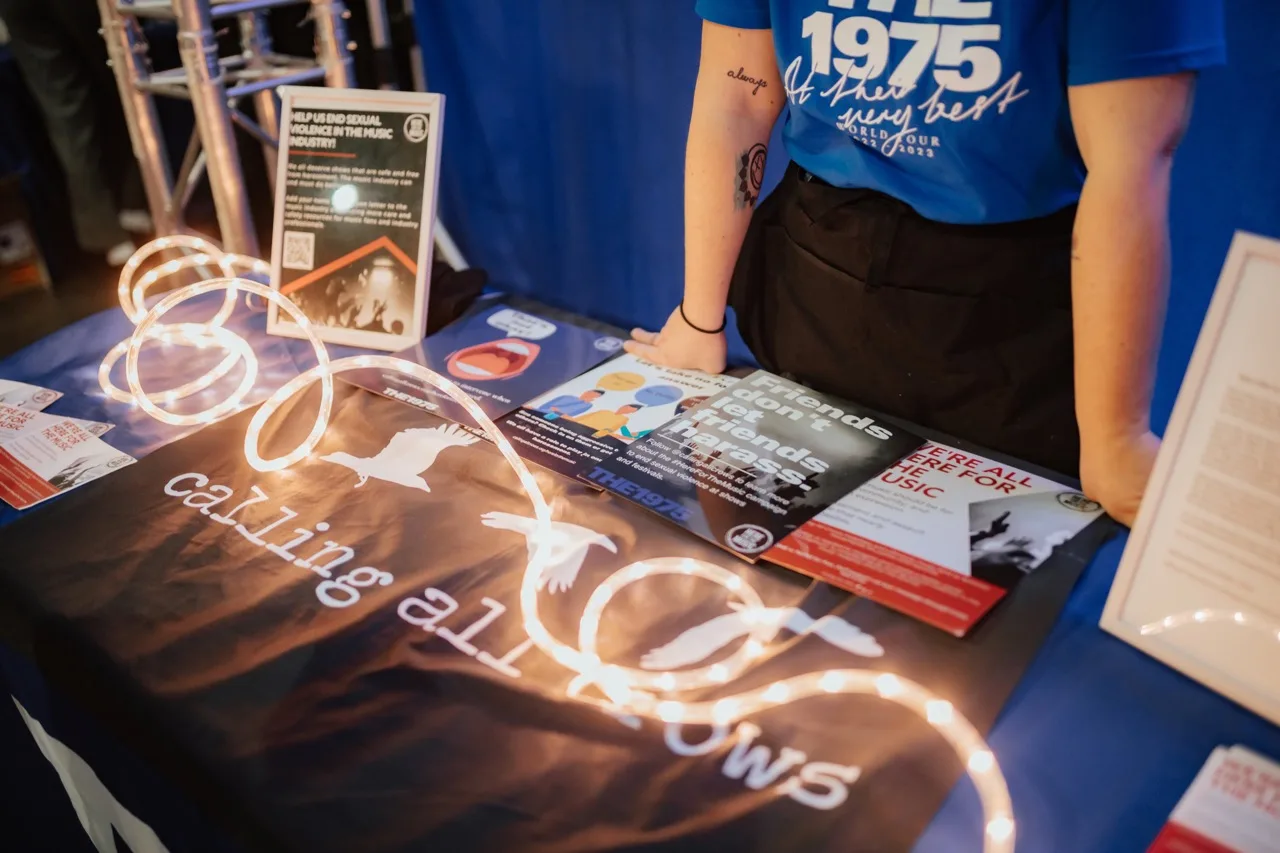 At all shows on the Being Funny in a Foreign Language Tour, local Calling All Crows centers were hosted in the 1975 Action Village. Calling All Crows is on a mission to connect and mobilize music fans to join feminist movements for justice and equality by raising awareness, taking action, and collectively working for social change.
